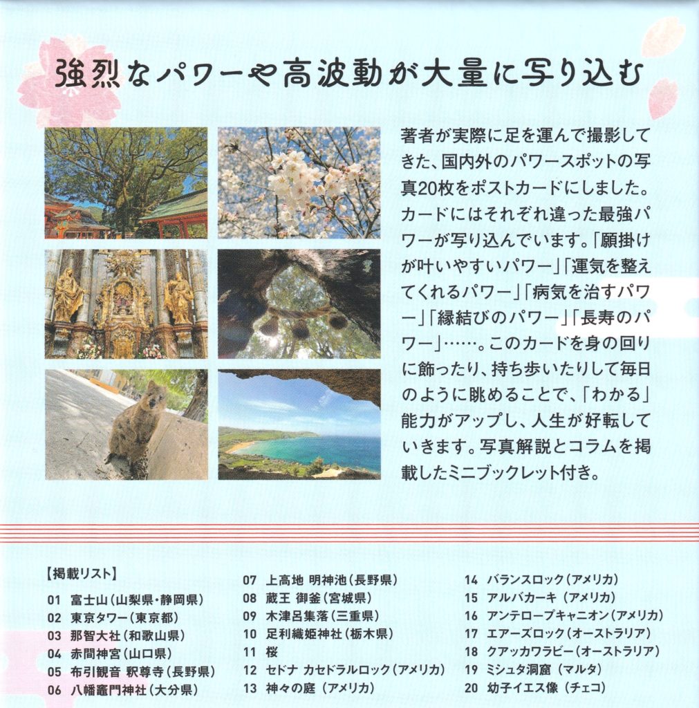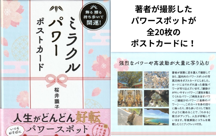神仏研究家の桜井識子さんが世界中のパワースポットを駆け巡り、ここぞ!という場所を探し当て、さらにご自身で撮影した写真をポストカードにした『飾る 贈る 持ち歩いて開運! ミラクルパワーポストカード』が昨年12月に発売されました。