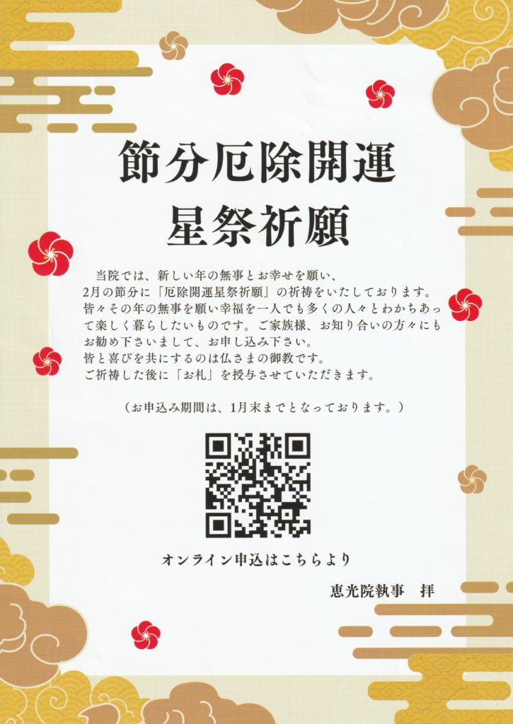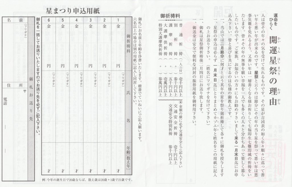恵光院より届いた星祭り祈祷の案内を掲載いたします。こちらが申込書です。